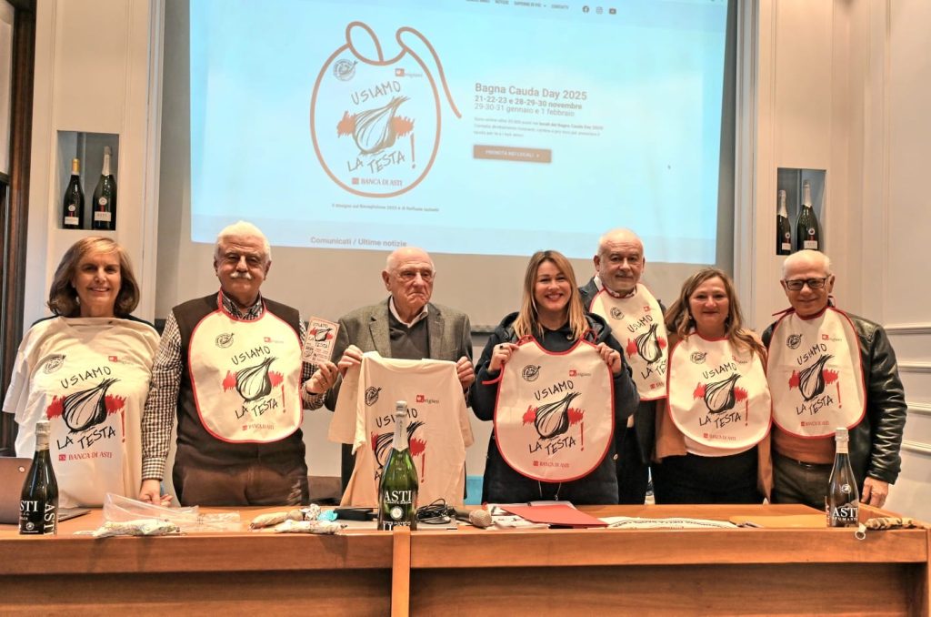 Ristoratori, autorità e alleati del Bagna Cauda Day si sono incontrati venerdì 14 novembre nella sede del Consorzio dell’Asti per la conferenza stampa che ha presentato ufficialmente la manifestazione, quest’anno all’edizione numero tredici. È stata anche l’occasione per annunciare i premiati con il riconoscimento “Testa d’aj”, assegnato a personalità che si distinguono per coraggio, autenticità e ironia.